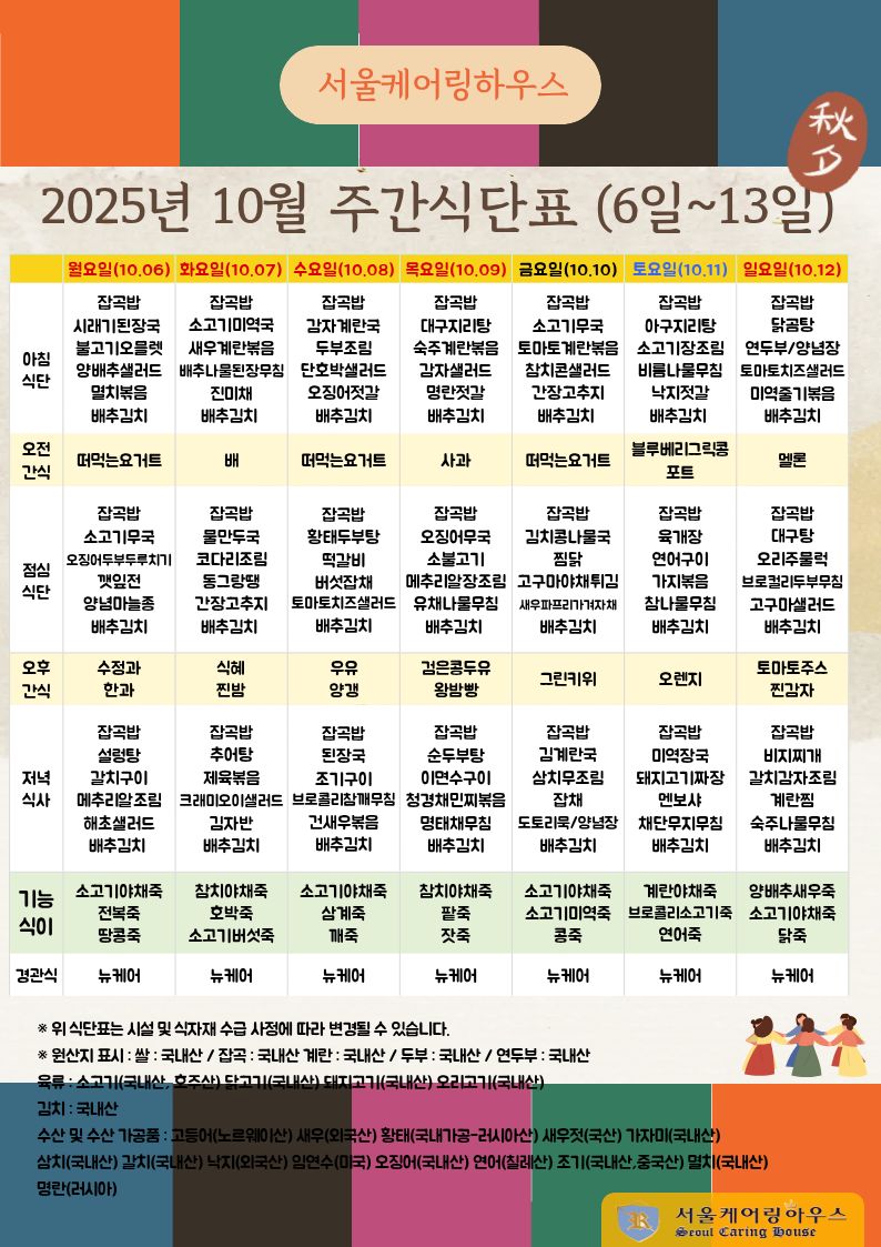 10¿ù½Ä´ÜÇ¥ (10¿ù6ÀÏ~10¿ù12ÀÏ)