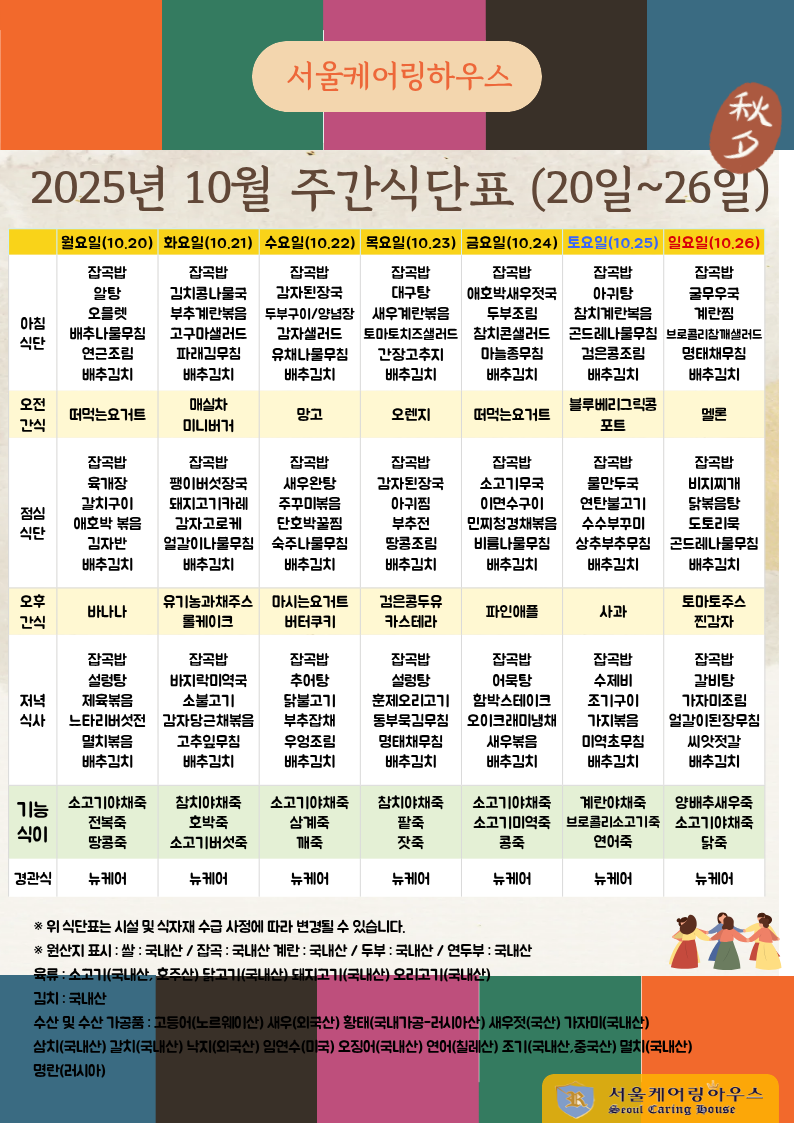 10¿ù½Ä´ÜÇ¥ (10¿ù20ÀÏ~10¿ù26ÀÏ)