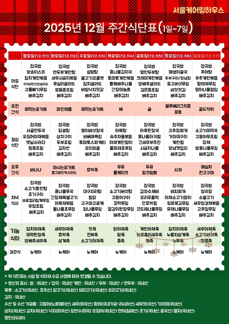 12¿ù½Ä´ÜÇ¥ (12¿ù1ÀÏ~12¿ù7ÀÏ)