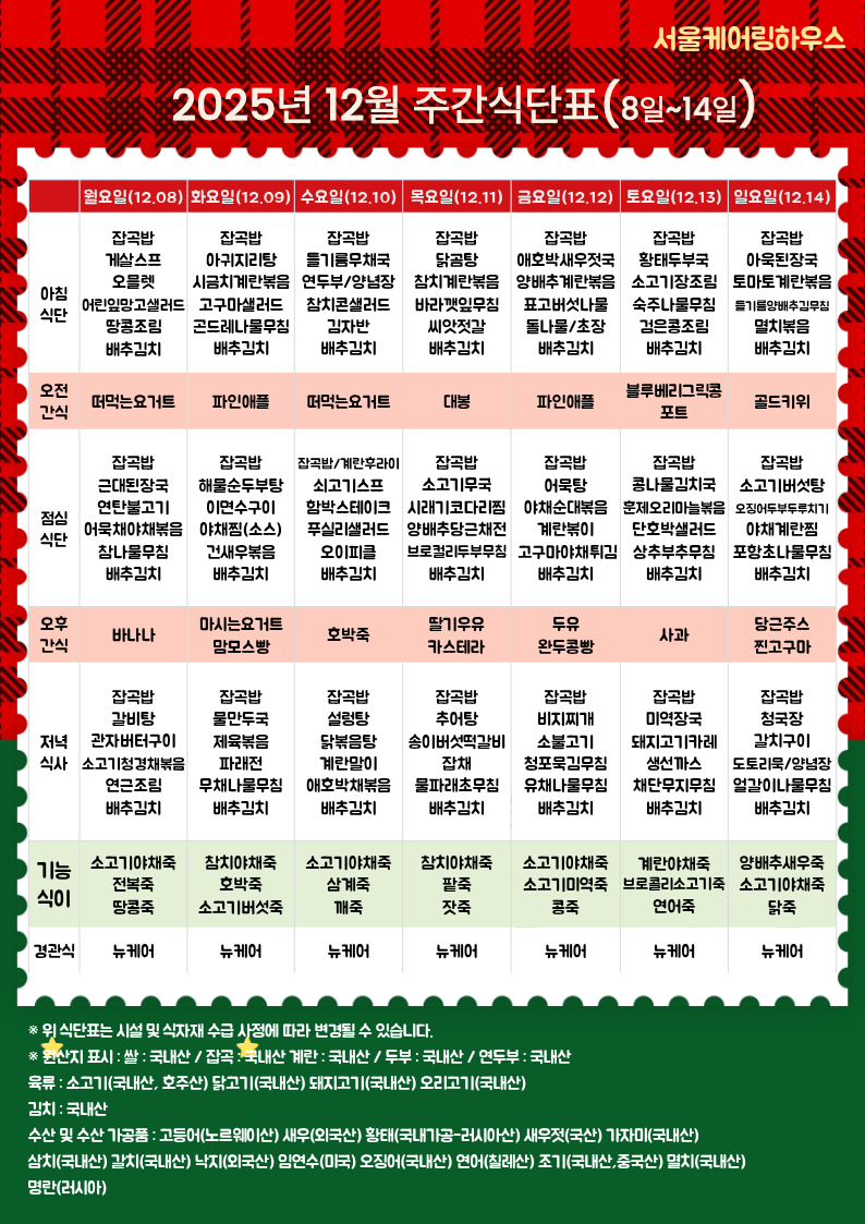 12¿ù½Ä´ÜÇ¥ (12¿ù8ÀÏ~12¿ù14ÀÏ)