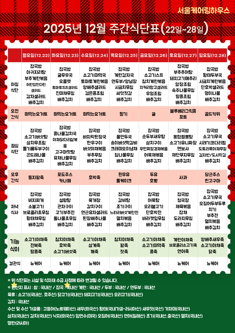 12¿ù½Ä´ÜÇ¥ (12¿ù22ÀÏ~12¿ù28ÀÏ)