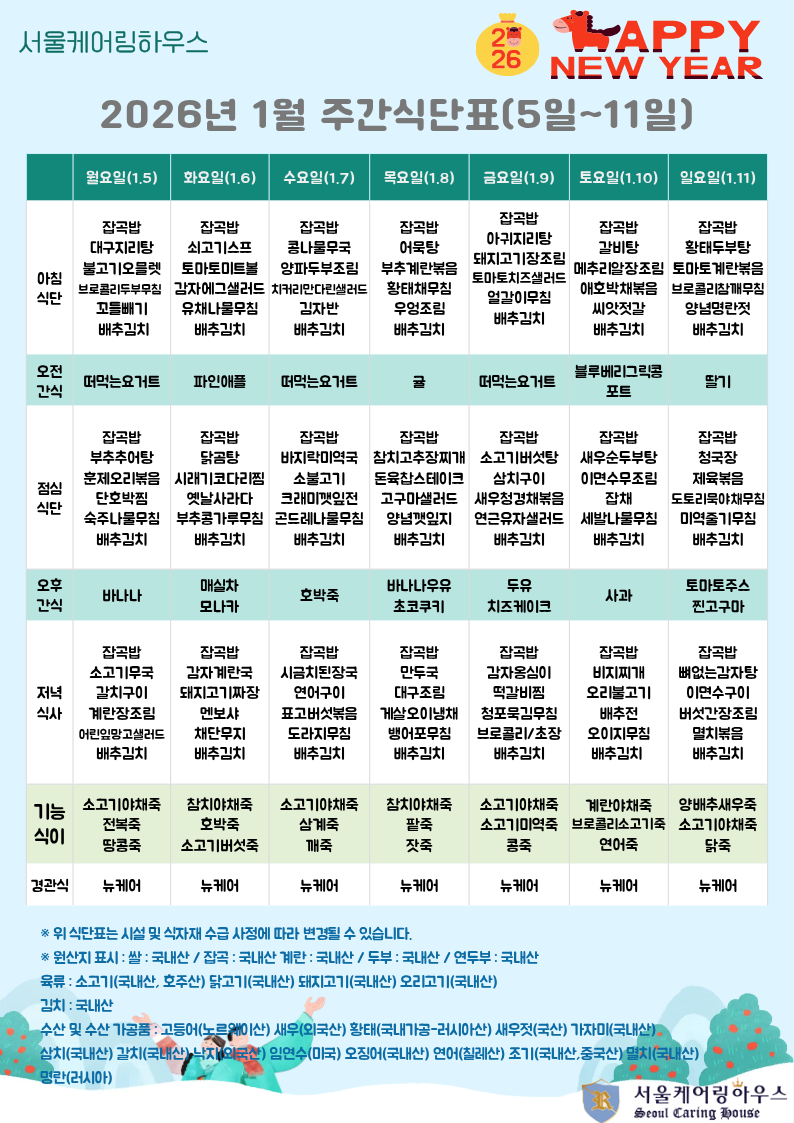 26³â 1¿ù½Ä´ÜÇ¥ (1¿ù5ÀÏ~1¿ù11ÀÏ)