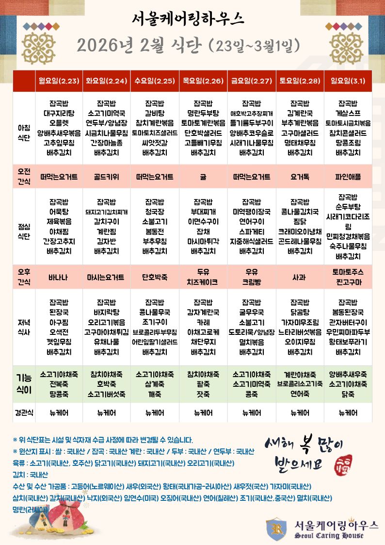 26³â 2¿ù½Ä´ÜÇ¥ (2¿ù23ÀÏ~3¿ù1ÀÏ)