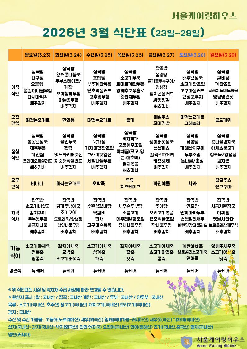 26³â 3¿ù½Ä´ÜÇ¥ (3¿ù23ÀÏ~3¿ù29ÀÏ)