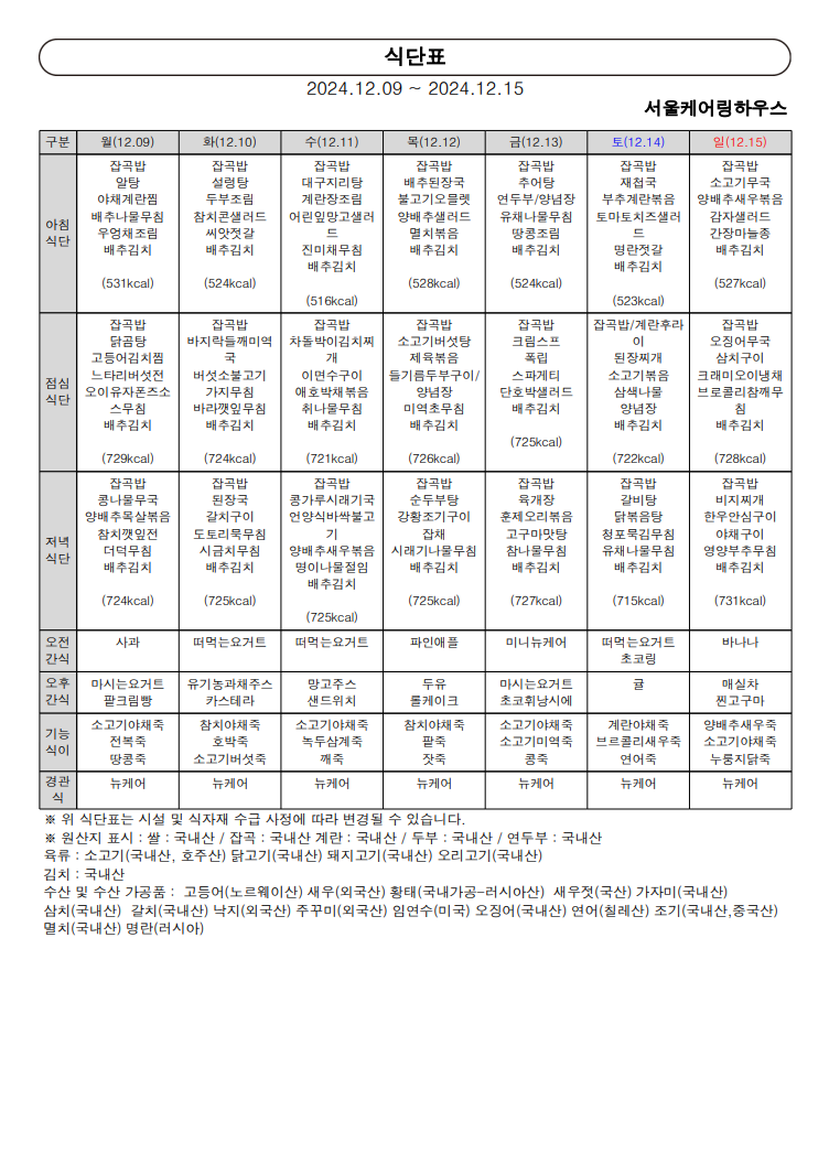 12¿ù½Ä´ÜÇ¥ (12¿ù9ÀÏ~12¿ù15ÀÏ)
