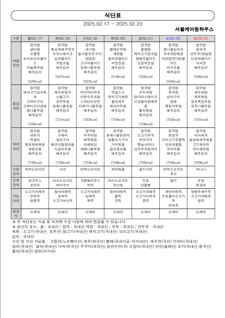 2¿ù½Ä´ÜÇ¥ (2¿ù17ÀÏ~2¿ù23ÀÏ)